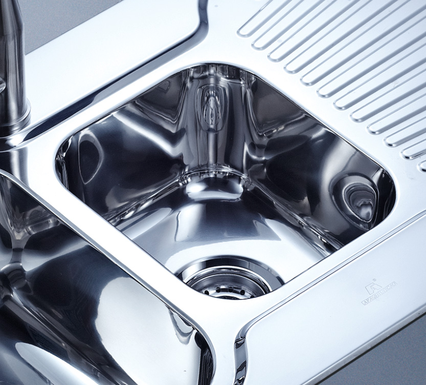 阿發(fā)水槽立邊采用國際先進的10-25°小R角一次成型拉伸技術(shù),更具立體感與時尚潮流,亦能充分擴展水槽利用空間;一次成型拉伸技術(shù),杜絕了焊接工藝易產(chǎn)生的水槽生銹,脫焊事故,充分保障水槽50年以上的使用壽命