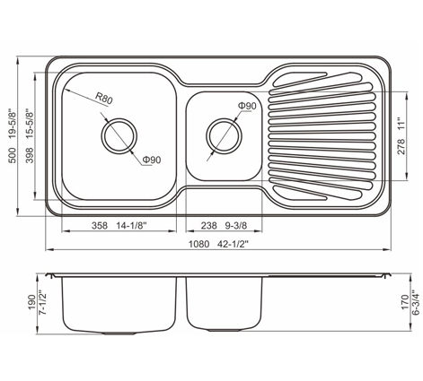 槽底采用斜面壓痕,四輻導(dǎo)流槽設(shè)計,與平面壓痕和無痕水槽相比,導(dǎo)水更為流暢,下水更迅速,能有效防止積水,消除沉淀物