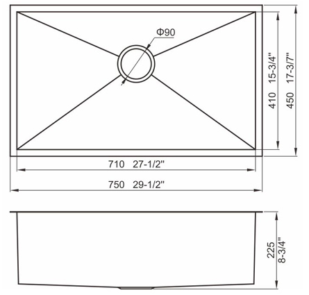 槽底采用斜面壓痕,四輻導流槽設計,與平面壓痕和無痕水槽相比,導水更為流暢,下水更迅速,能有效防止積水,消除沉淀物